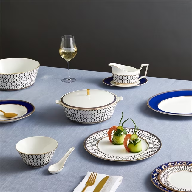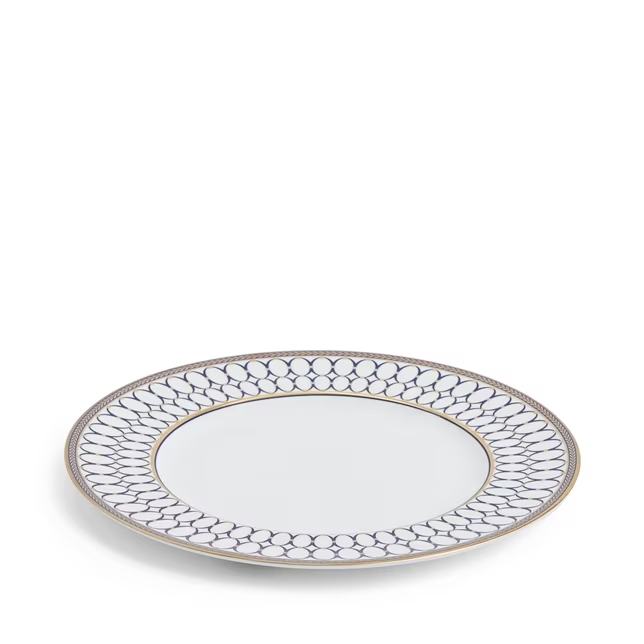 The famous Wedgwood cameo shape is the hero of this Renaissance Gold 27cm Plate. A dinner plate fit for any table setting, the silky white fine bone china is bordered with the expressive cameo shape, with cobalt blue and gold accents highlighting the neoclassical design. Finished with an indulgent gold trim and scrolled pattern border, this expressive plate is a perfect foundation for your blue and gold table setting. Complete the set with other items from the Renaissance Gold collection or mix and match with other Wedgwood collections to create your own bespoke look.